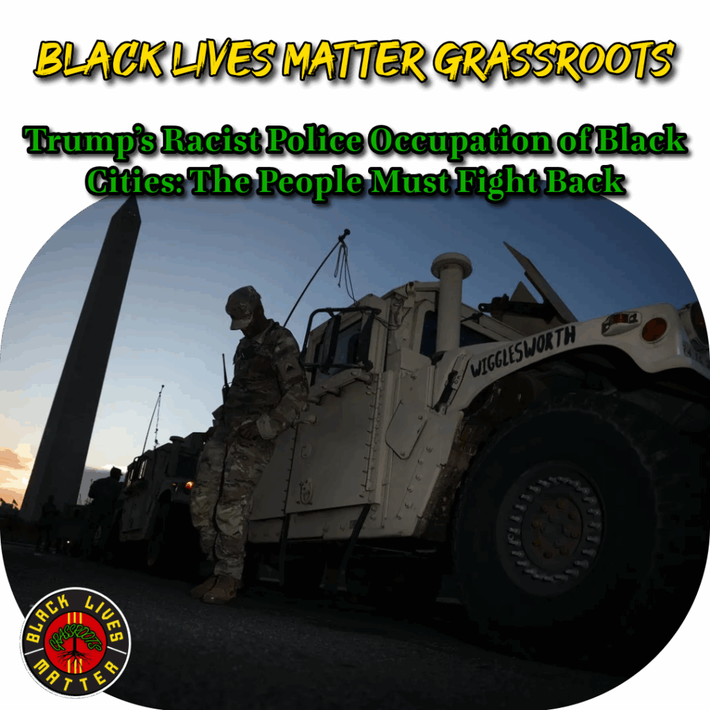 When more than 700,000 predominantly Black residents can be locked down by federal troops acting as an occupying force, the blueprint becomes clear: manufacture ‘chaos’ in a disenfranchised city, then normalize domestic military occupation nationwide. By Trump’s own utterances, Washington, DC is the testing ground for tactics destined for Black cities nationwide.
